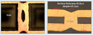 如果可以使用銅來填充通孔,還不出現空隙或凹坑,則會更加高效。結果將會得到更可靠的產品,因為銅的導電